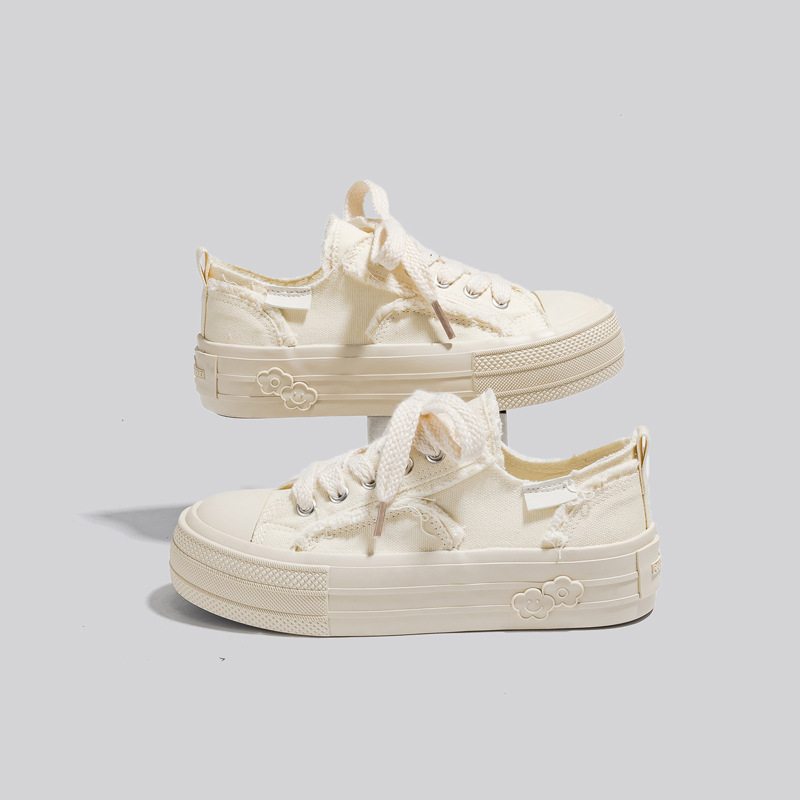 2023夏の新型カジュアルスポーツの白い靴の女性の通気性の厚い底の学生の小さい大衆のデザイン感のキャンバスの靴