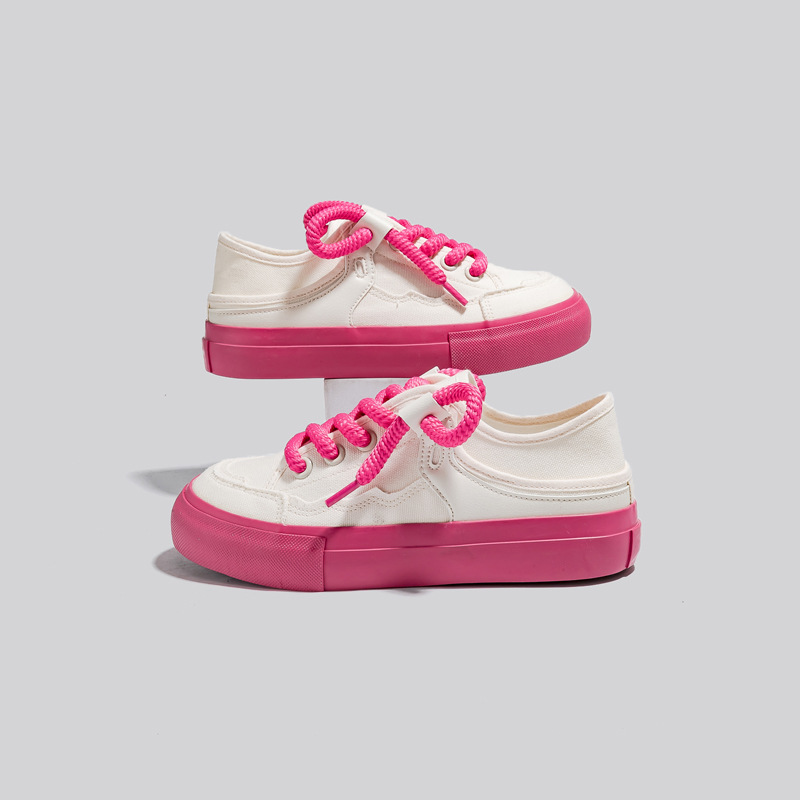 2023夏の新型百合通気性のある白い靴を履いている女子学生は、ズック靴のピンクのファッションを踏んでいる