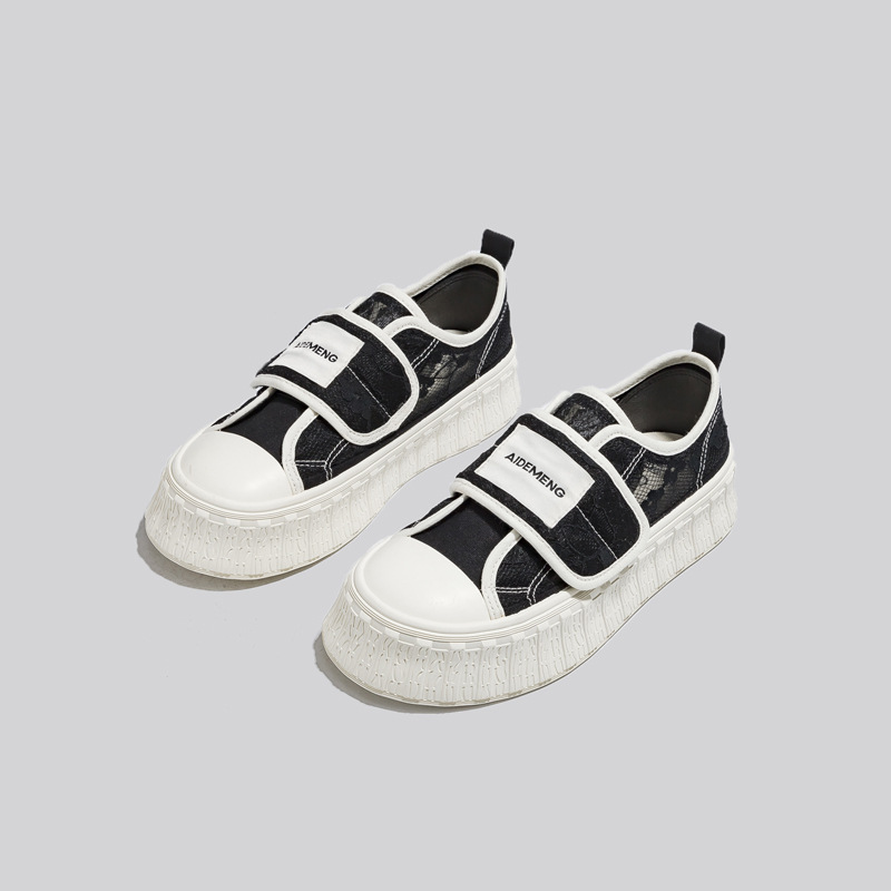 2023夏の新型レースのネットのマジックは足を踏んで怠け者の靴のカジュアルな百合のキャンバスの靴の女性の白い靴を貼ります。