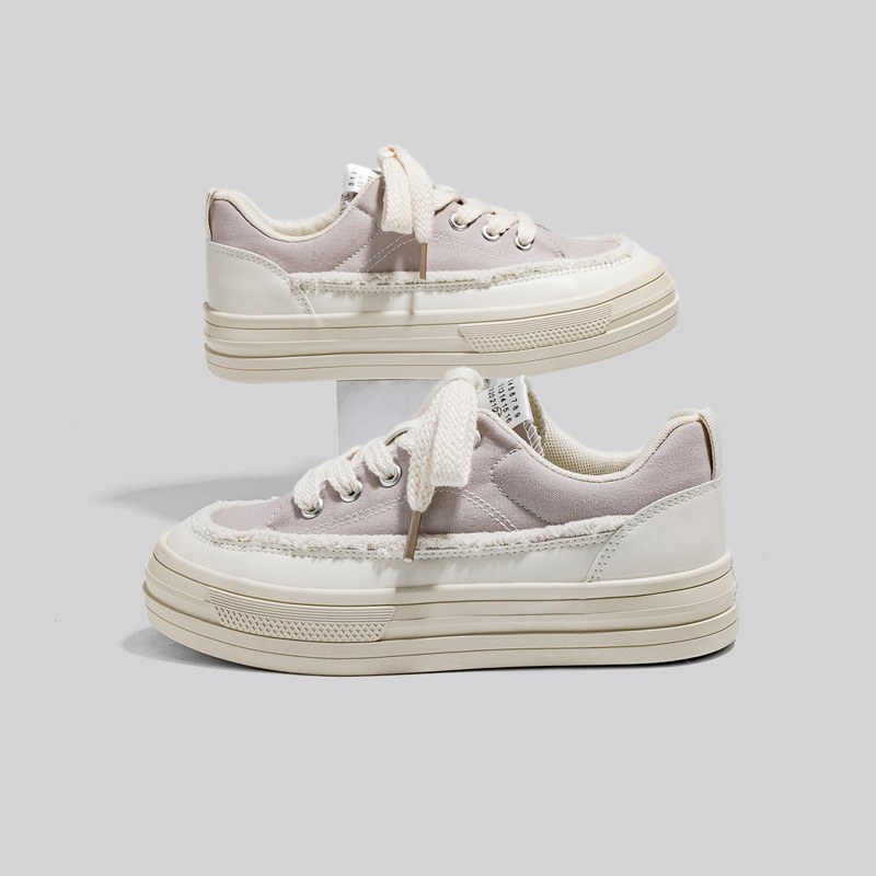 2023ピンクのカジュアルな通気性のあるキャンバス靴の女性の夏の百合の小さい大衆のデザイン感の板靴の学生の厚い底の小さい白い靴