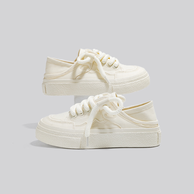 2023夏の新型ニンジン色のキャンバス靴の女性の通気性の厚い底のカジュアルな白い靴の女性の運動板の靴の学生