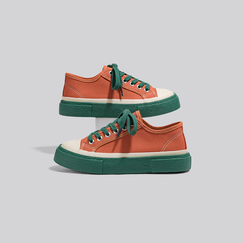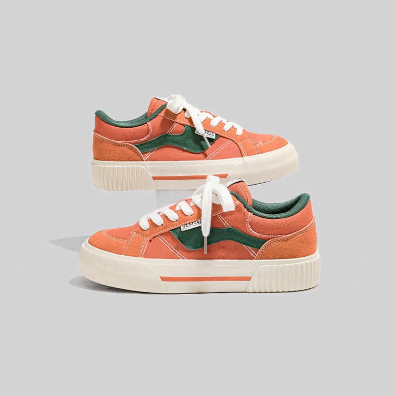 2023夏の新型カジュアルなデザインのキャンバス靴女性ニンジン色のデザイン感のある女性の板靴