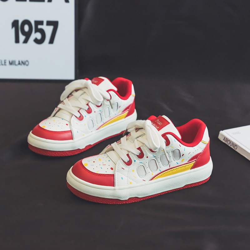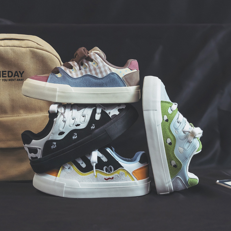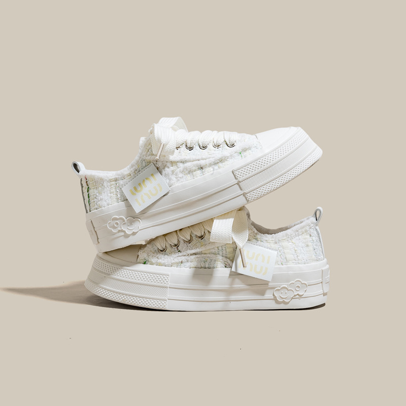 2025小衆オリジナル爆改起爆かわいい花白靴女底大頭スポーツシューズレジャー板靴