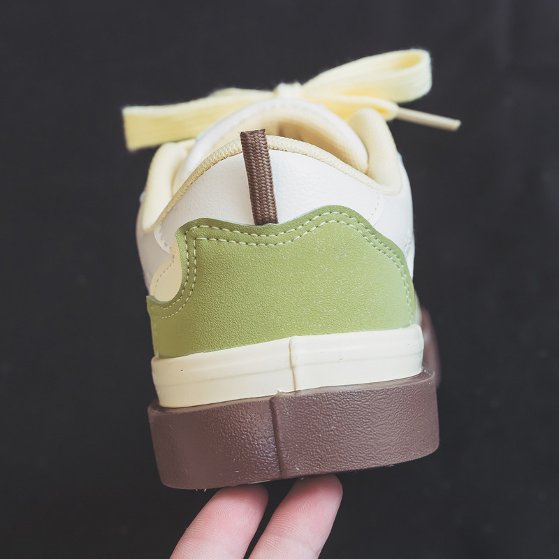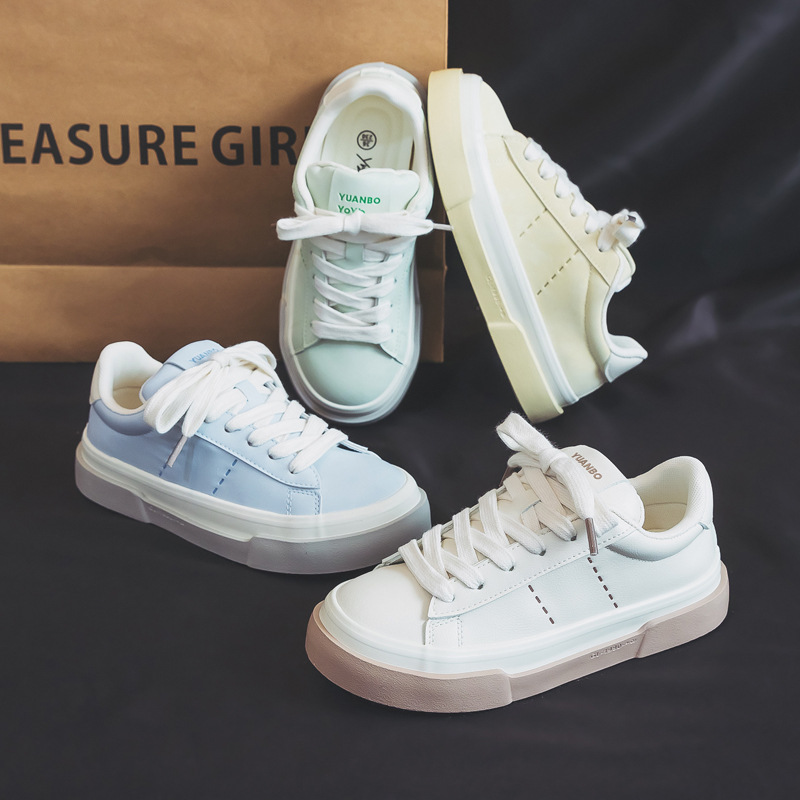2025春の新しい革の板の靴はカジュアルな靴の学生の白い靴の黄色の女性の靴にスカートの靴を配合します。
