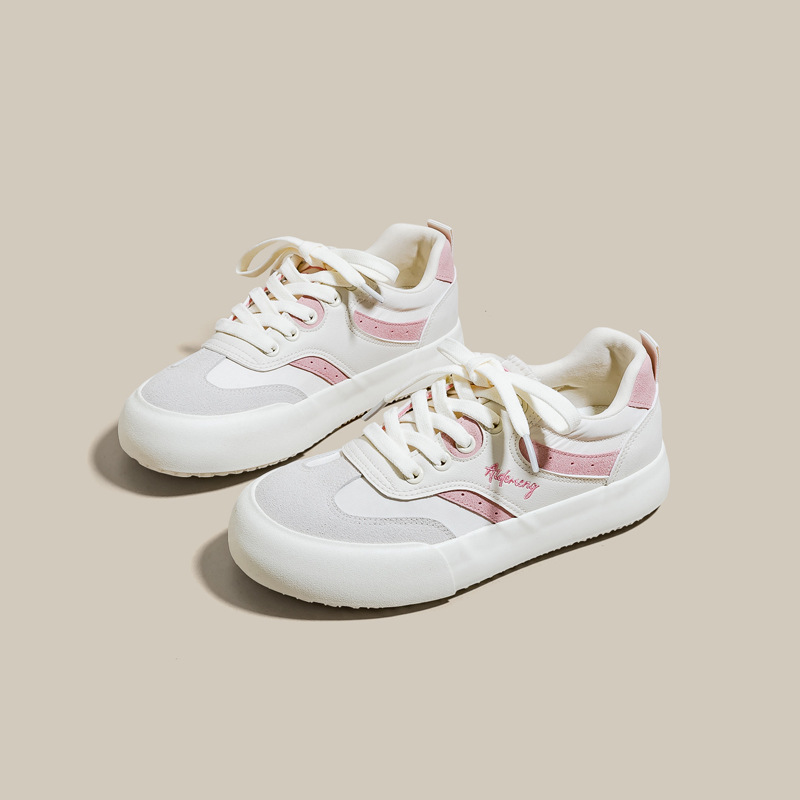 韓国系星板靴の女性モデル2025新型春モデルの靴の厚い底のピンクのカジュアル靴の白い靴の女性ファッション