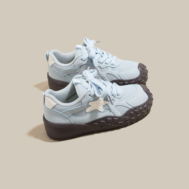2024夏の新商品の韓国版の低さんは運動レジャーの厚い底の白い靴の空色の通気板の靴の女性を手伝います。