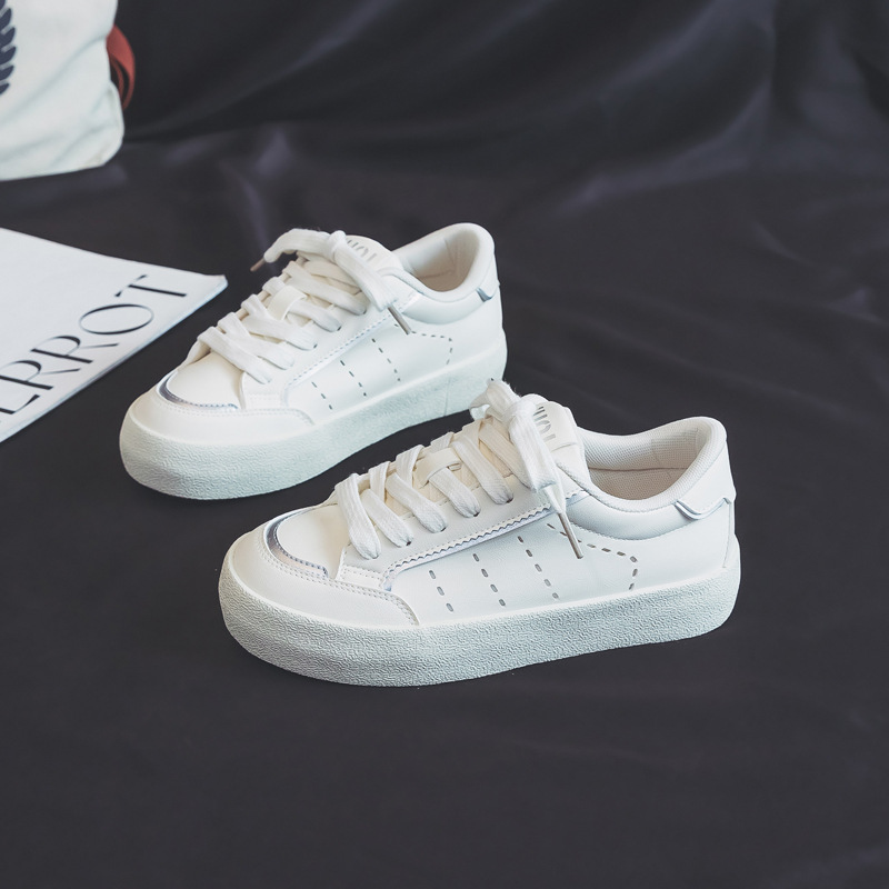 白い靴の女性2024の新しい春と秋の新しい快適な靴の厚い底の板の靴の夏のカジュアルな皮の面はスカートを配合します。