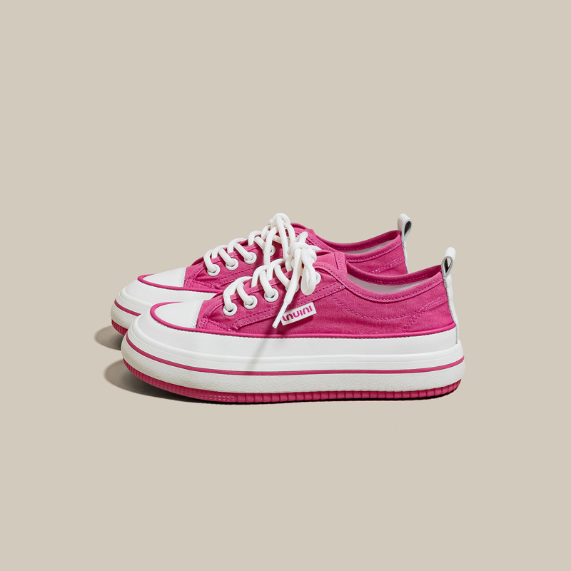 大きな赤い靴の女性のタイプ2025春の新型の爆発的な人気のあるシックな靴のレトロなカジュアルなキャンバス靴の女性