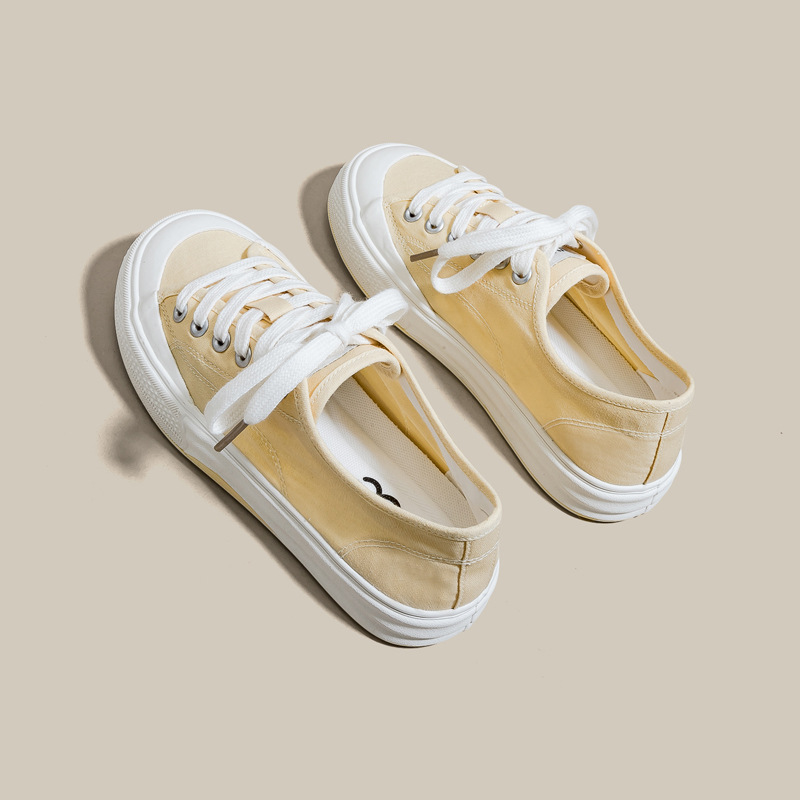 ベージュ色のズック靴の女性靴2024夏の新型の低い靴