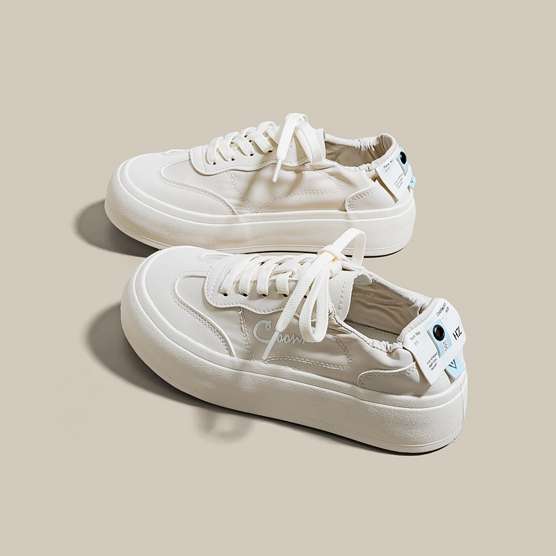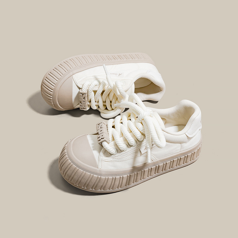 厚い底の貝の殻の頭の白い靴の女性の2024年の春の新型の百合のキャンバスの靴の女性の松の餅の運動のレジャーの板の靴