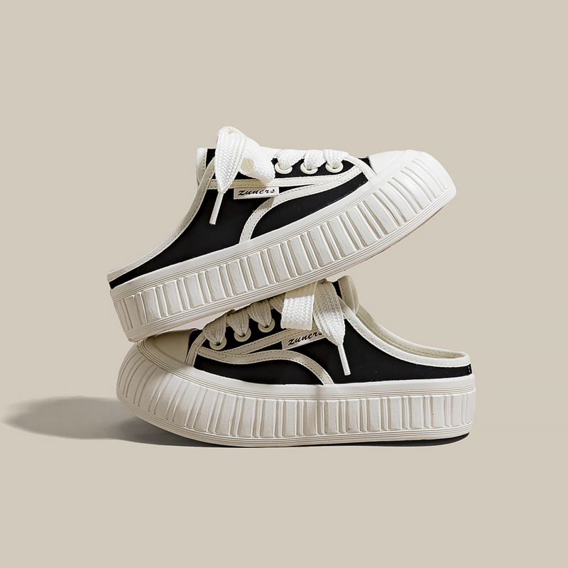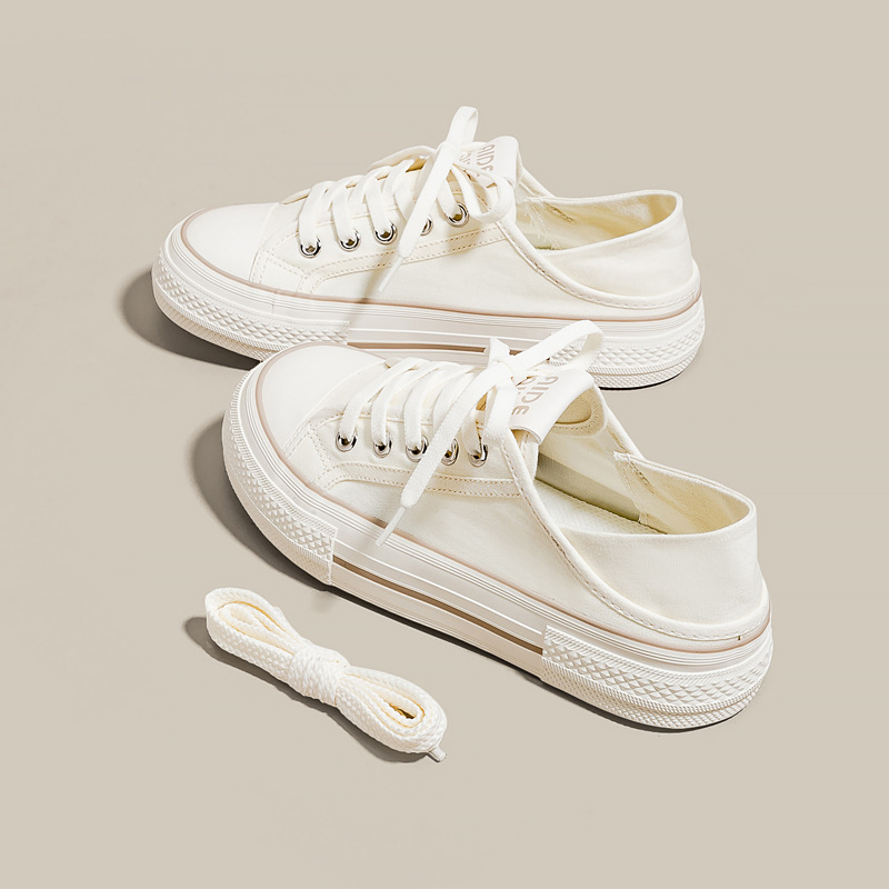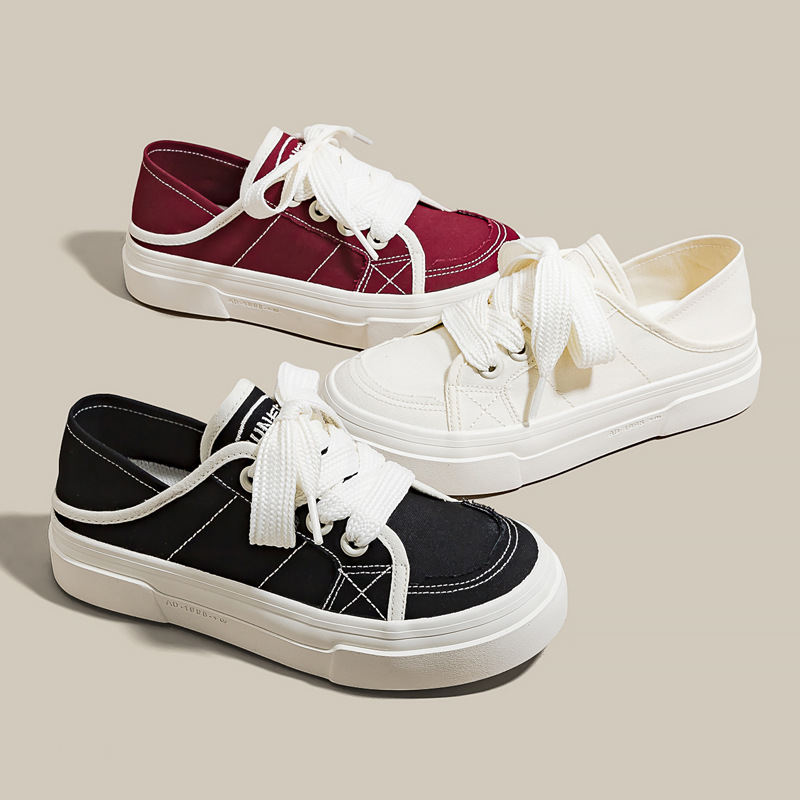 2024夏の新型の低い足の厚い底の半引きのキャンバスの靴の女性の通気性の白い靴の百合の運動のレジャーの板の靴の女性
