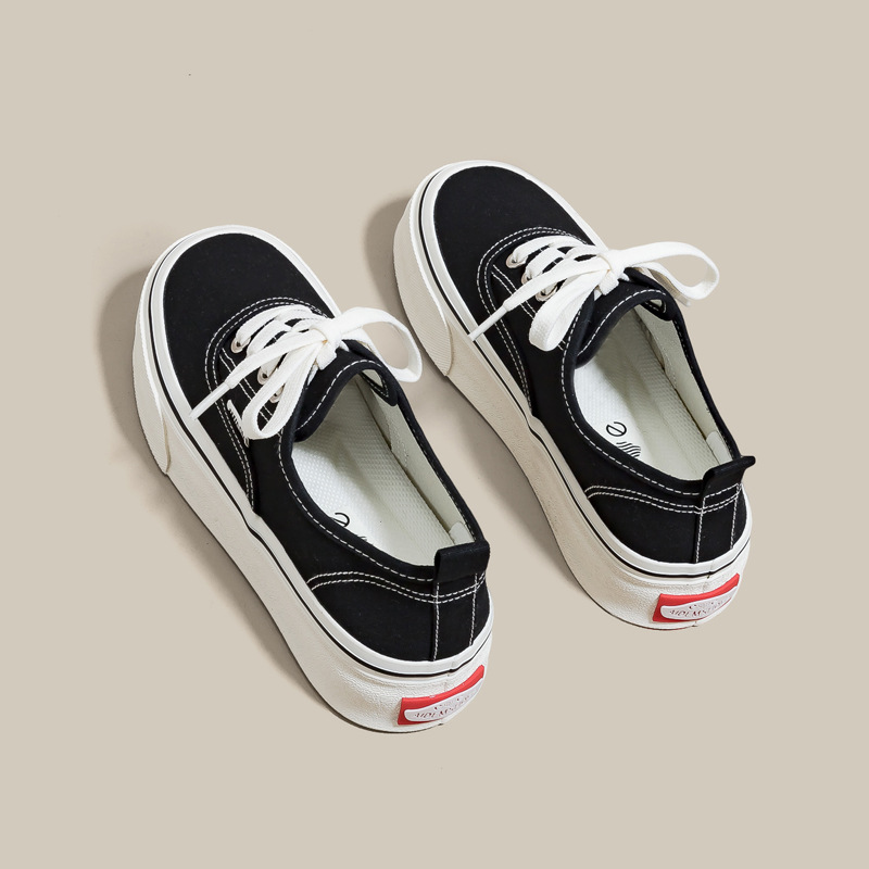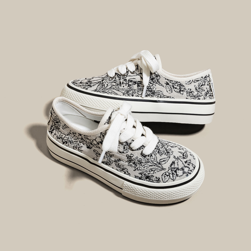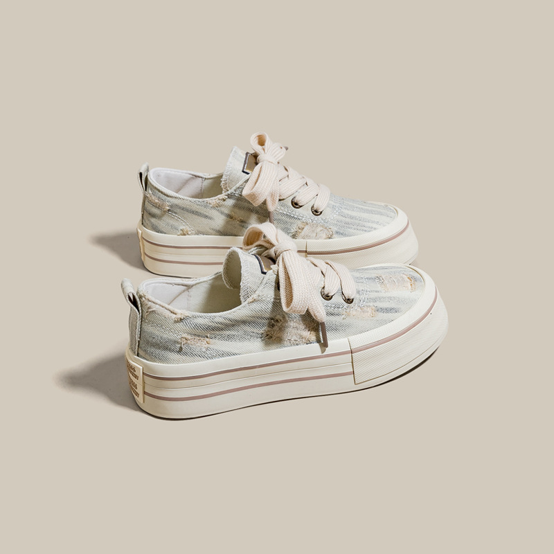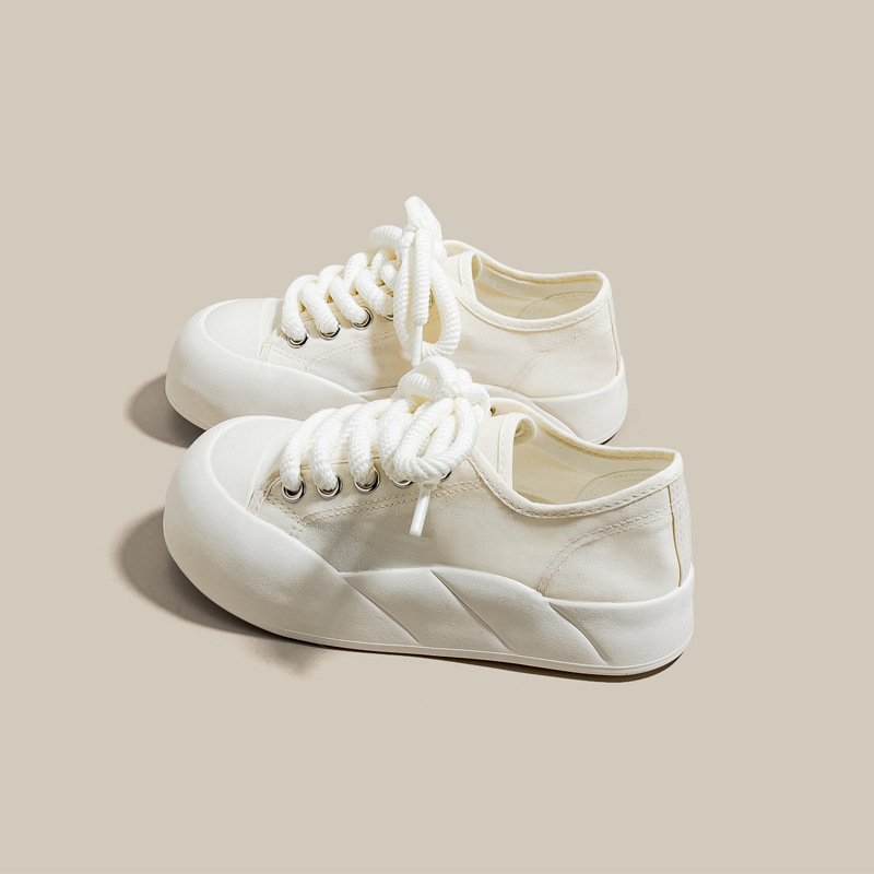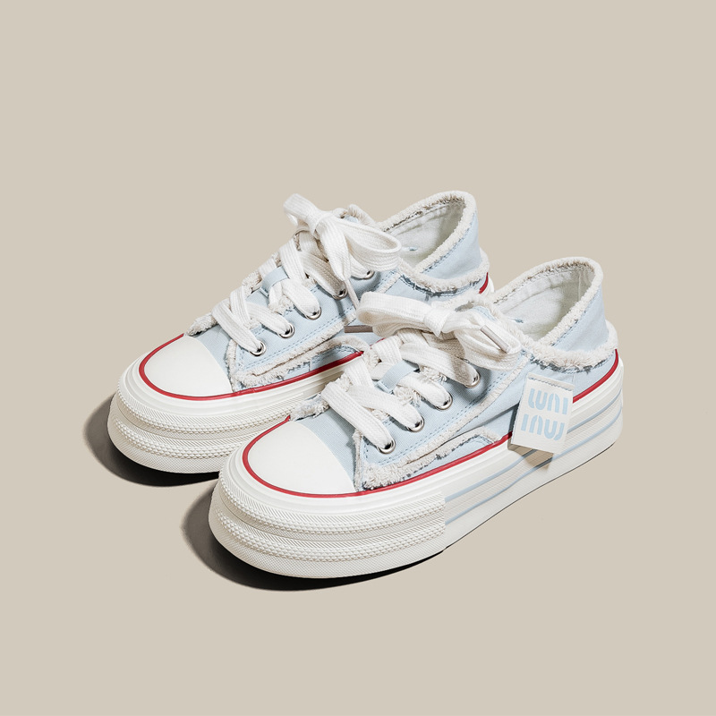 2024新型夏の薄いキャンバス靴の女性は通気性があります。カジュアルな板靴の厚い底が高くなります。白い靴のinsです。