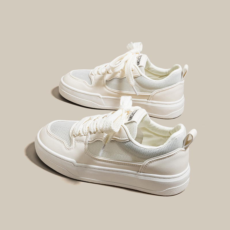 白い靴の女性2024の新しい夏の厚い底の爆発的なネットの通気性の底の低い板の靴の小さい大衆はネットの靴を設計します。