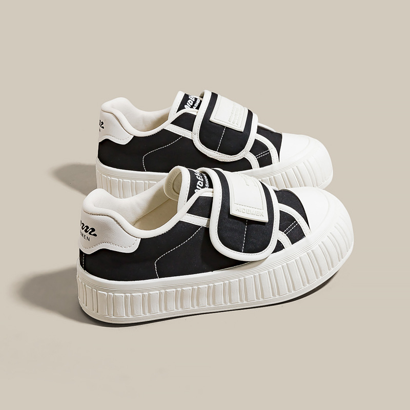 ズックの靴の女性の白い靴の女性のネットの赤い厚い底のマジックは2024新型の春の学生を貼ります。