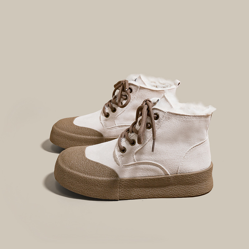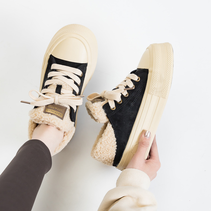 2023冬の小衆保温設計二着板靴女加毛レジャー運動白靴二綿靴女