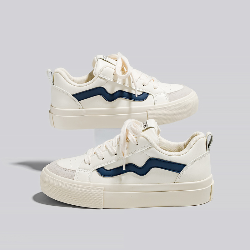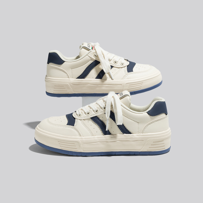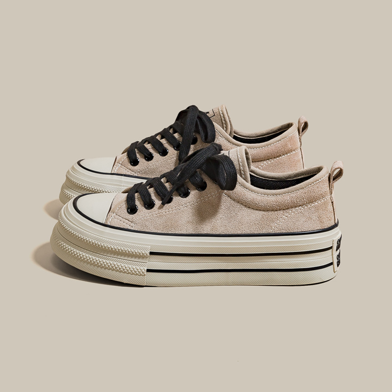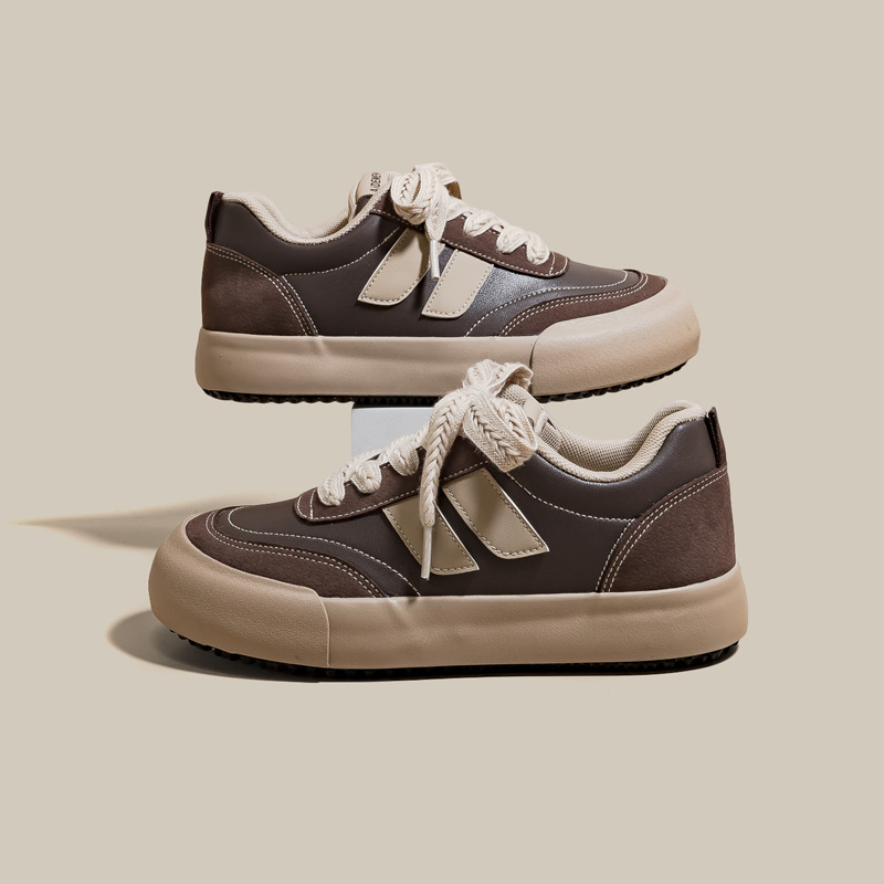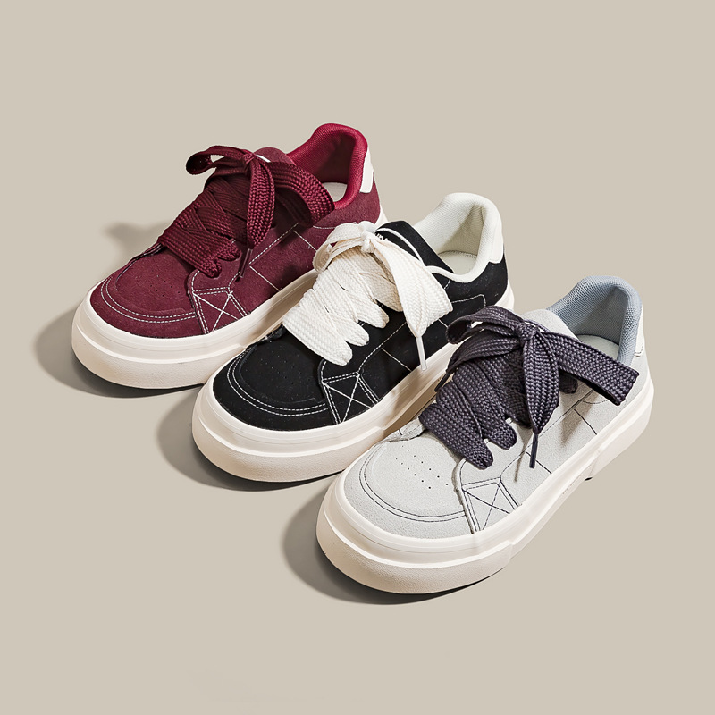 2023秋の新型百合運動小衆設計板靴女子学生革面スニーカーカジュアル厚い底板靴