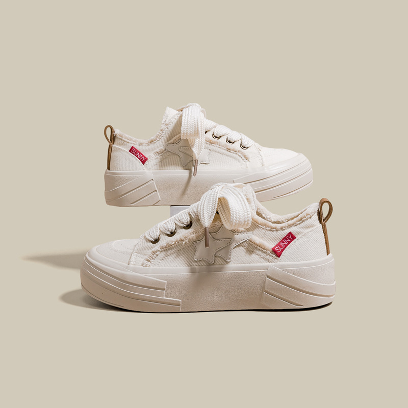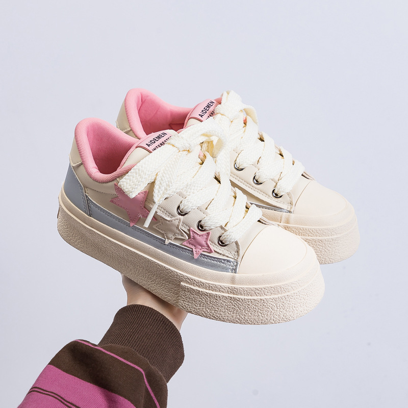 2023秋の新型の低い足の厚い底の星の光の金のキャンバスの靴の女性の通気性の学生の百合の運動のレジャーの板の靴の女性