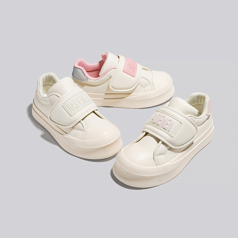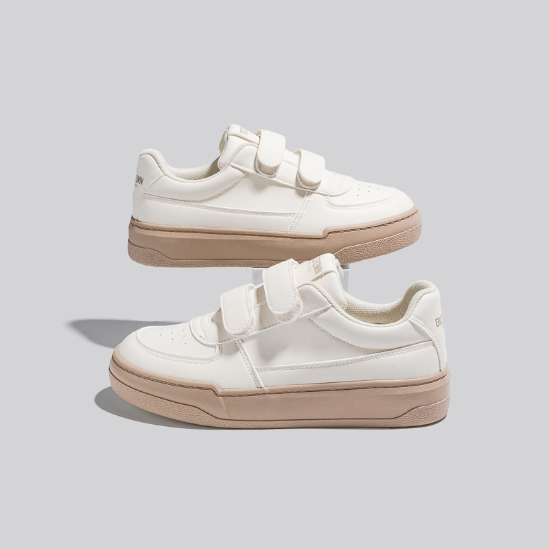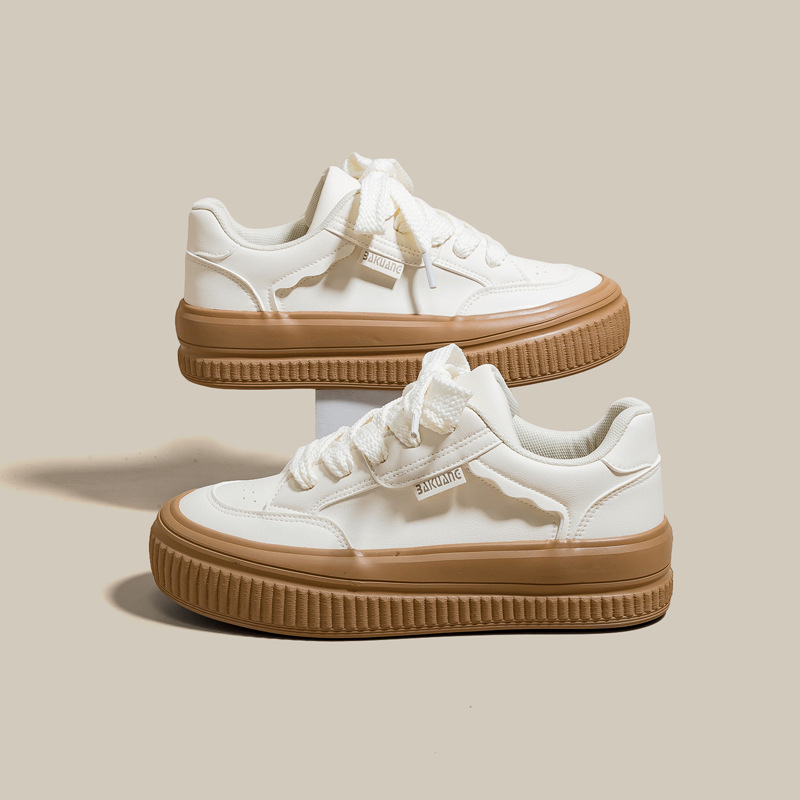 ミルクのフフの厚い底の白い靴の女性の皮の表面の通気性はスカートの大きい頭の板の靴の2023秋の新型の大衆の設計に配合します。