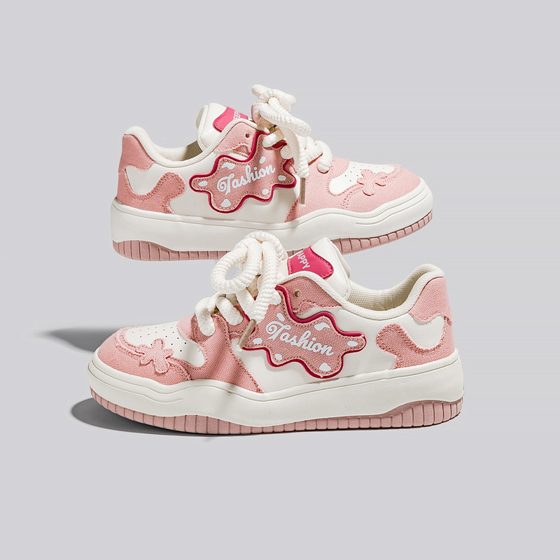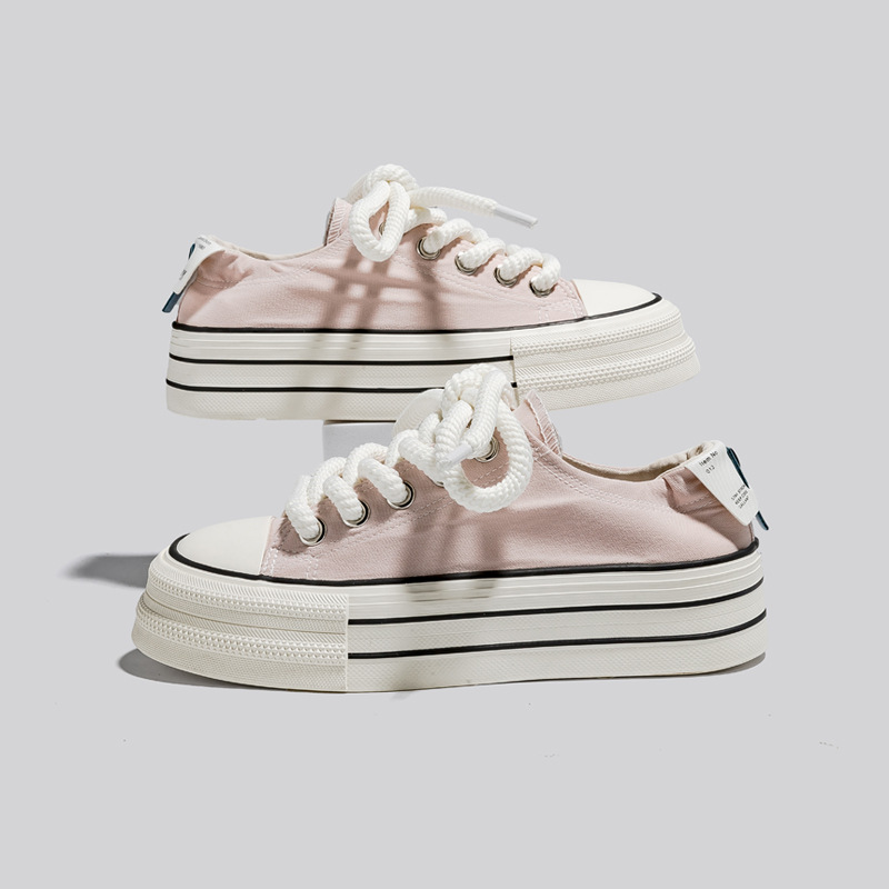 厚い底のカジュアルな靴2024春の新型の丸い頭の運動の板の靴の女性の百合の小さい大衆の設計感の低い助けのズックの靴