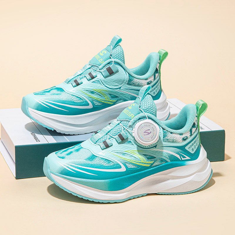 Hobiberネットの春の回転は男の子のランニングシューズの女の子の運動靴の双網の通気性のカジュアルシューズを掛けます。