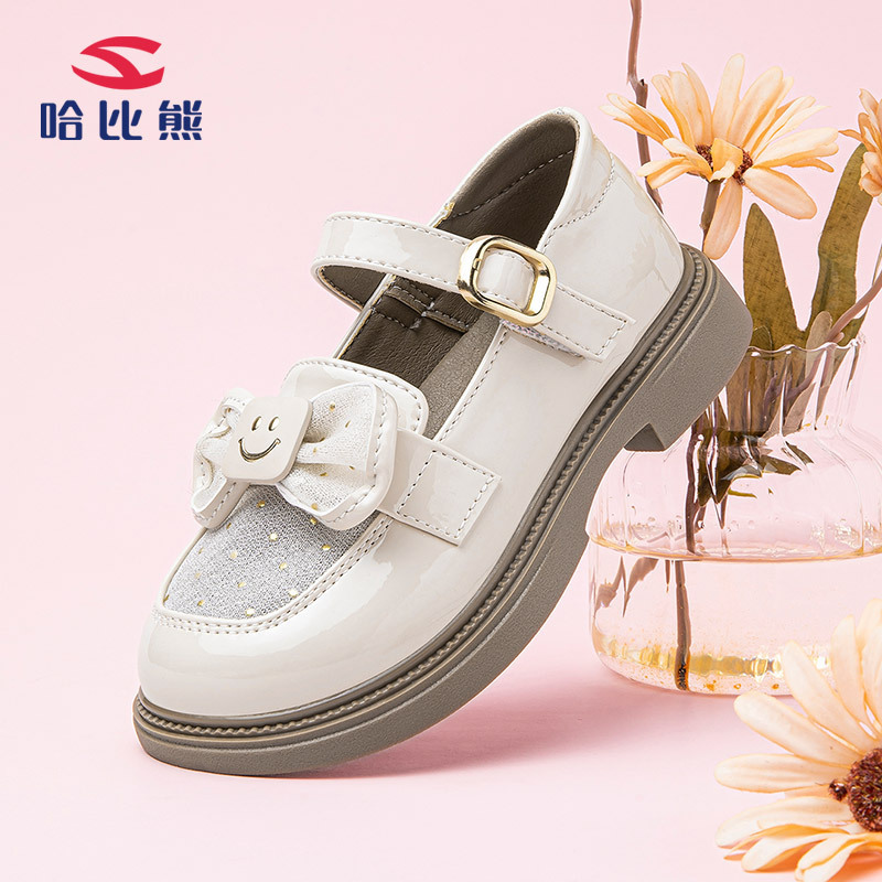 HOBIBEAR童靴の女の子の春秋の女の子の小さい革靴は簡単で浅い口の英倫の風の福の靴を代行します。
