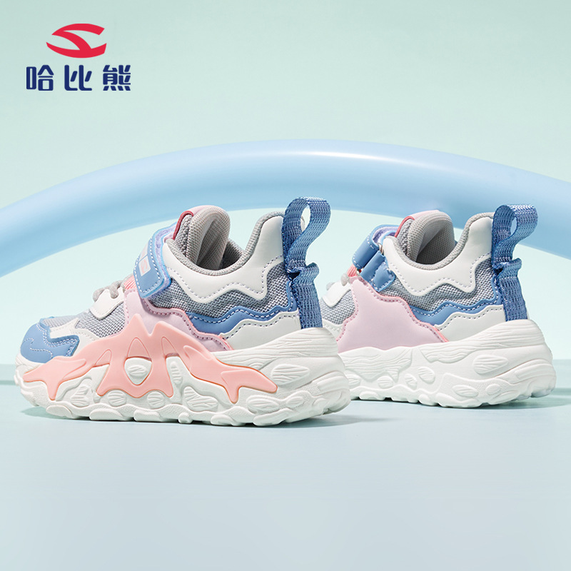 HOBIBEAR双網春秋男児運動靴のボタン靴のアウトドアジョギング靴の女の子のお父さんの靴の代理