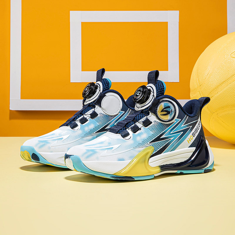 HOBIBEAR革の男の子のバスケットボールの靴春秋の子供の回転ボタンの靴のキャンパスの運動靴の代行
