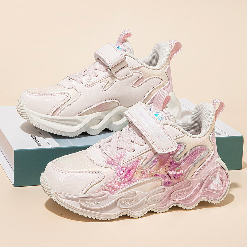 HOBIBEAR革の女の子の運動靴の春と秋の靴の女の子のピンクの靴の軽いカジュアルシューズの代理