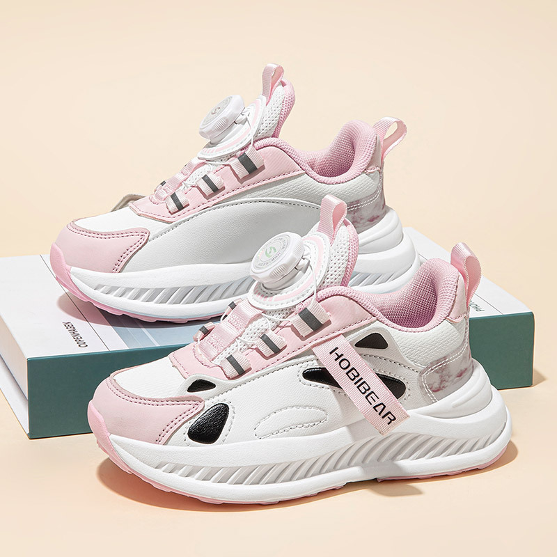 HOBIBEARダブルネット子供ネット靴秋のスタイルの運動靴の新型女の子の超軽量カジュアルシューズのボタン靴の代発