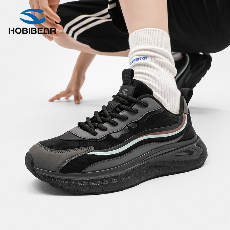 HOBIBEAR双網男靴春秋網面運動レジャーランニング厚い底百合父潮靴代発