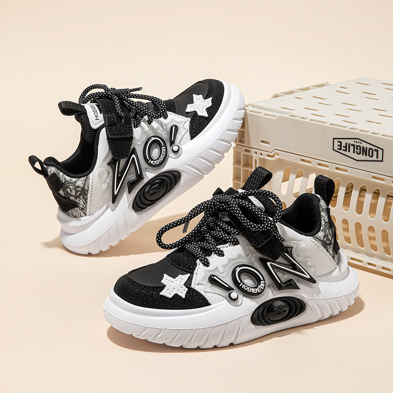 HOBIBEAR革の男の子のバスケットボールの靴の運動靴の春と秋の皮の面のランニングの靴の女の子の百合の子供の靴は代行します。