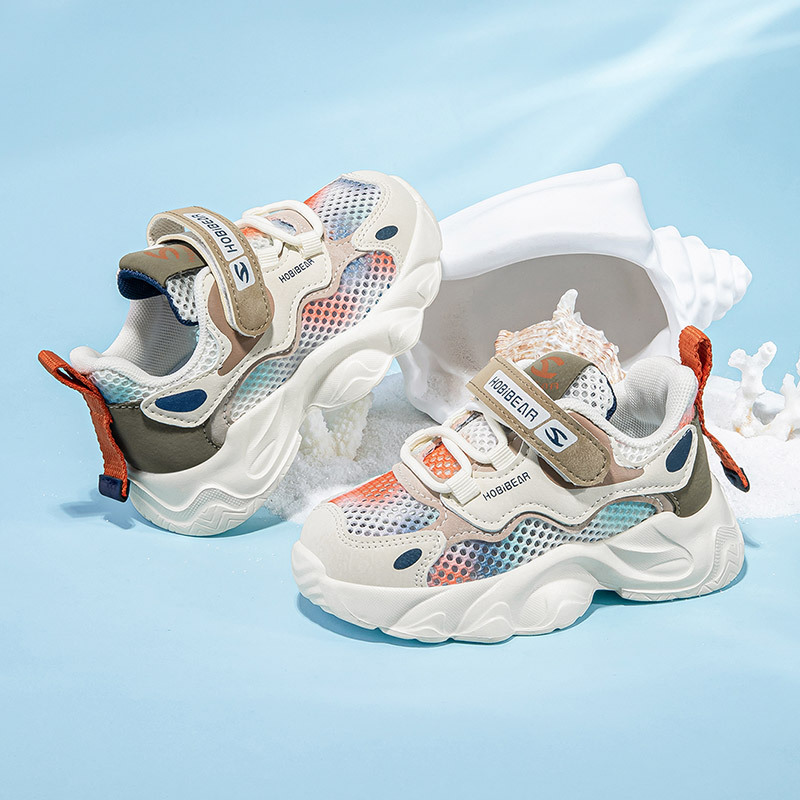 Hobibear童靴2023秋の新型男女童通気ネット布ソフト底室内包頭ビーチ靴代発