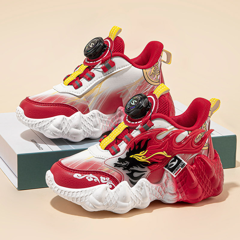 HOBIBEAR革の男の子の運動靴の中国の赤い潮のボタンの靴の春秋の女の子のカジュアルな靴は代行します。