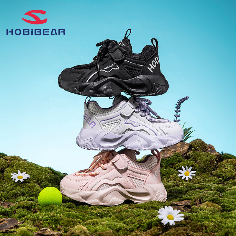 HOBIBEAR春の新型ダブルネット通気性女の子運動靴ファッションソフトソール男の子ランニングシューズメーカー直販