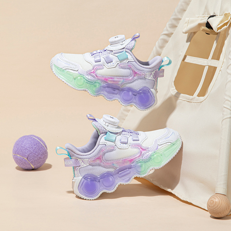 Hobibearネットの通気性の新しい男の子の回転ボタンの子供の靴の秋の女の子のボタンの運動靴のメーカーは直接販売します。