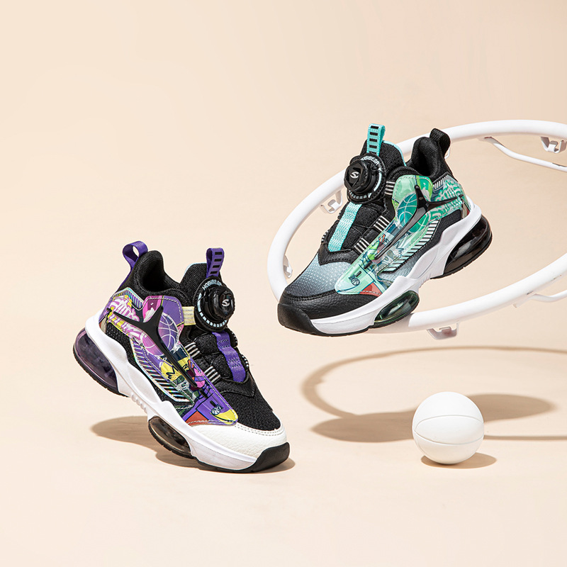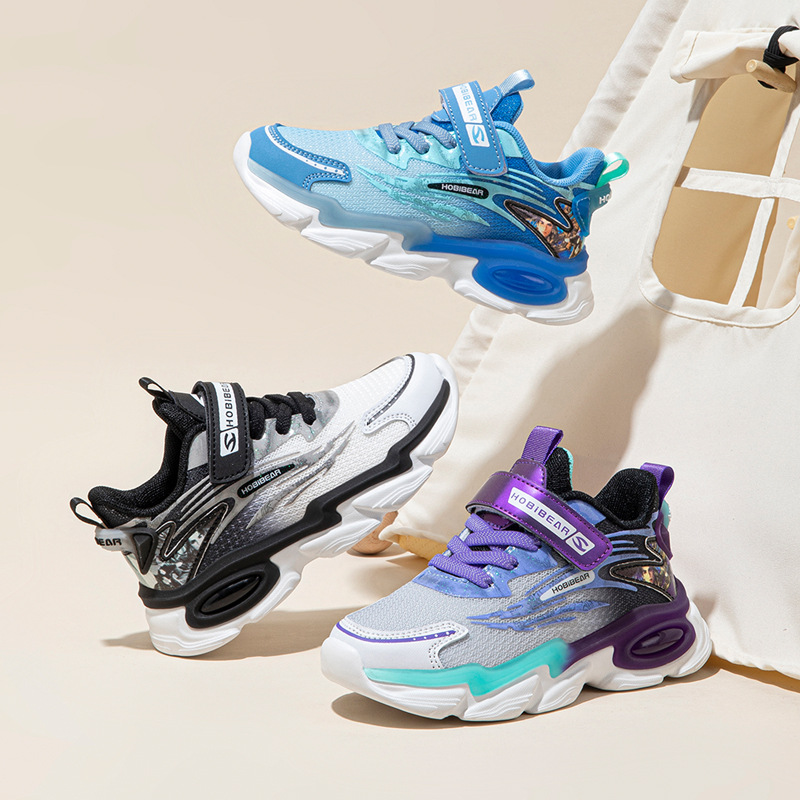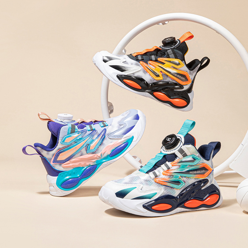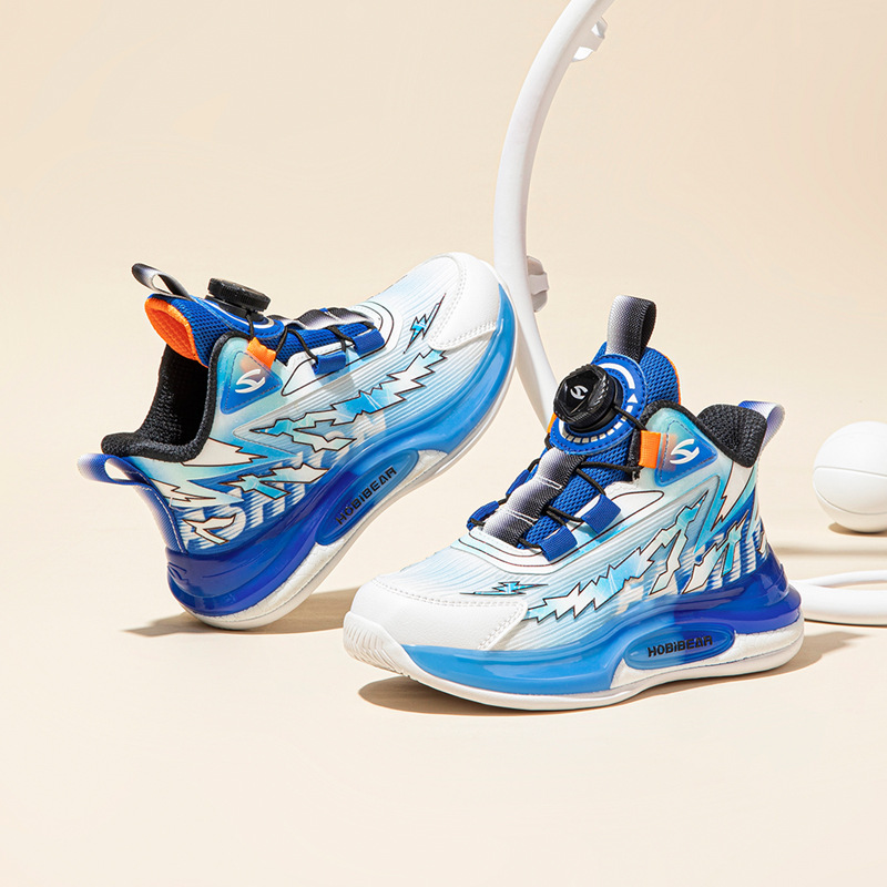 Hobibear子供の秋のバスケットボールの靴の通気性の回転は男の子の大きい子供のeva靴の底のランニング靴の代行を掛けます。