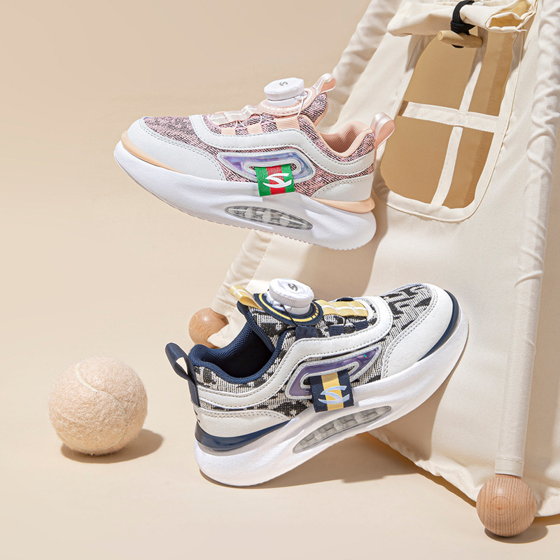 Hobibear童靴男女子供秋の新型子供回転ボタンスポーツシューズ衝突色ランニングシューズ代理
