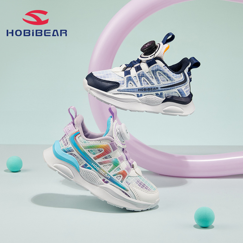 HOBIBEAR子供靴秋用男の子スポーツシューズ通気性軽量靴面女の子回転バックル付きトレンドシューズ一件代発