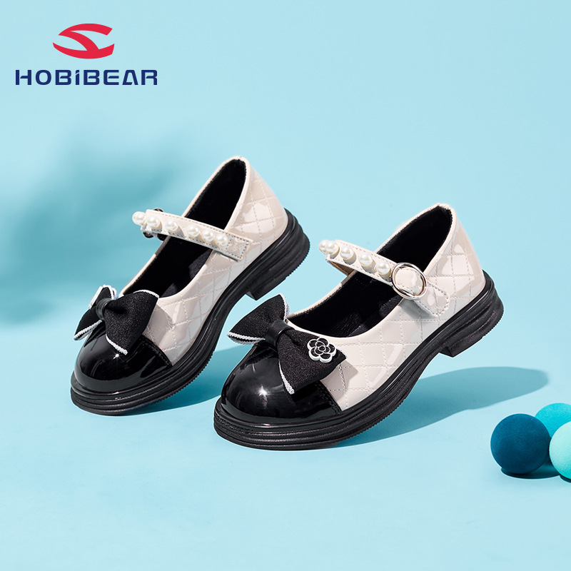 Hobibear童靴2023春プリンセス靴浅口小革靴女子カジュアル靴マジック貼り現物代発