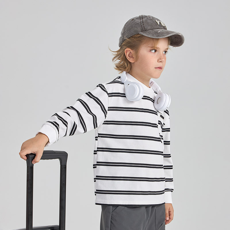 HOBIBEAR子供服秋冬プルオーバー丸首パーカー男児カジュアル長袖白黒ストライプ上着代発