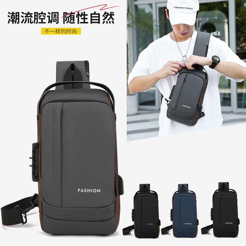 男性の胸のカバンは国境を越えて新型の盗難防止のパスワードをロックします。