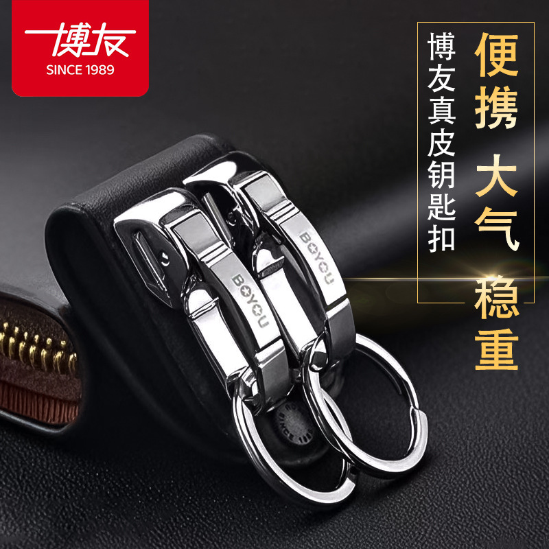 Boyou ダブルループベルトキーホルダーメンズウエストハンギングカーウエストバックルクリエイティブ本革二層牛革キーホルダー