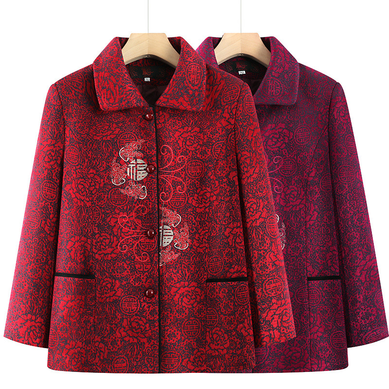 春秋中高年女性コート、母親服、おばあちゃん服、ゆったり女性コート、60~80歳高齢者コート