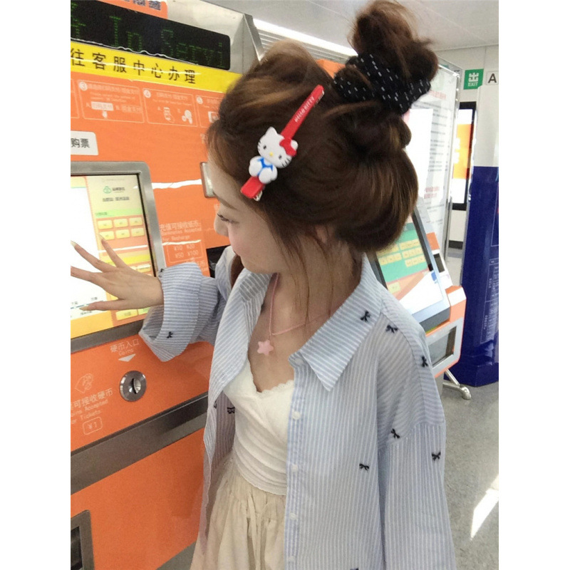 ブルーストライプ長袖韓国風シャツジャケット女性のための春の新しいデザインニッチルーズ多用途シャツトップ