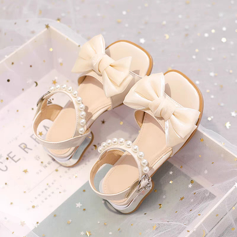 女の子の靴子供のハイヒールサンダルプリンセスレザーシューズ 2025 新しい夏ソフトソールビーチサンダル中大子供用