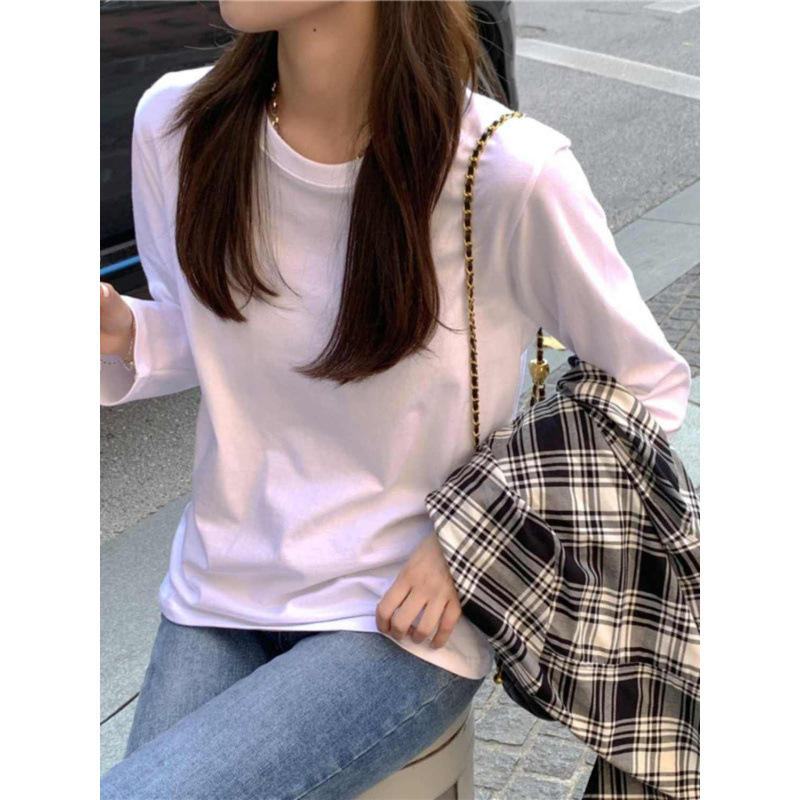 韓国版ベーシックレイヤードピュアコットン長袖Tシャツレディースボトリングシャツ春秋ルーズ新作カジュアル万能インナー