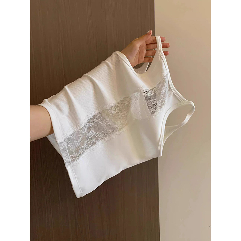 純綿白バックレースキャミソール女性のための 2025 新しいスタイルのアウターウェアとインナーパッド入りボトムストップ純綿