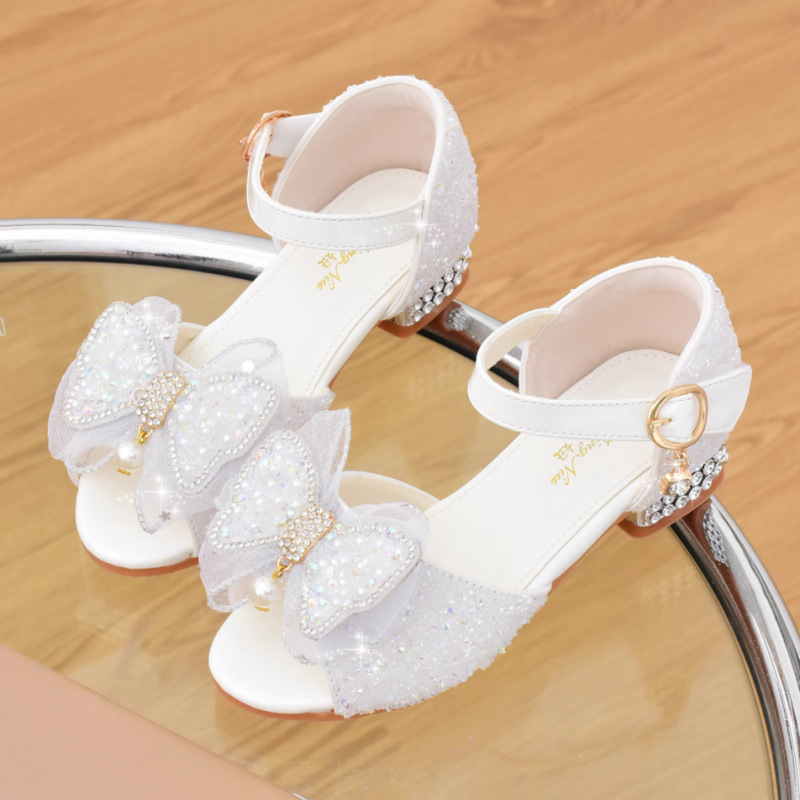 新しい女の子のハイヒールクリスタルプリンセスシューズ、中学生と小学生のパフォーマンスステージホスティングサンダル、キャットウォーク子供靴