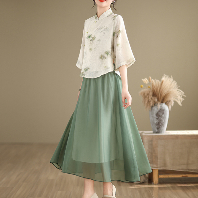 中国風スーツ漢服夏小柄チャイナドレスファッション2025新作ツーピーススカート