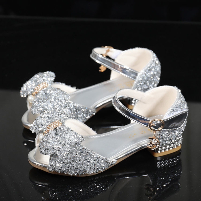 女の子サンダルプリンセス夏のクリスタルシューズ 2025 新しい女の子キャットウォークソフトソールハイヒール子供のパフォーマンスシューズ